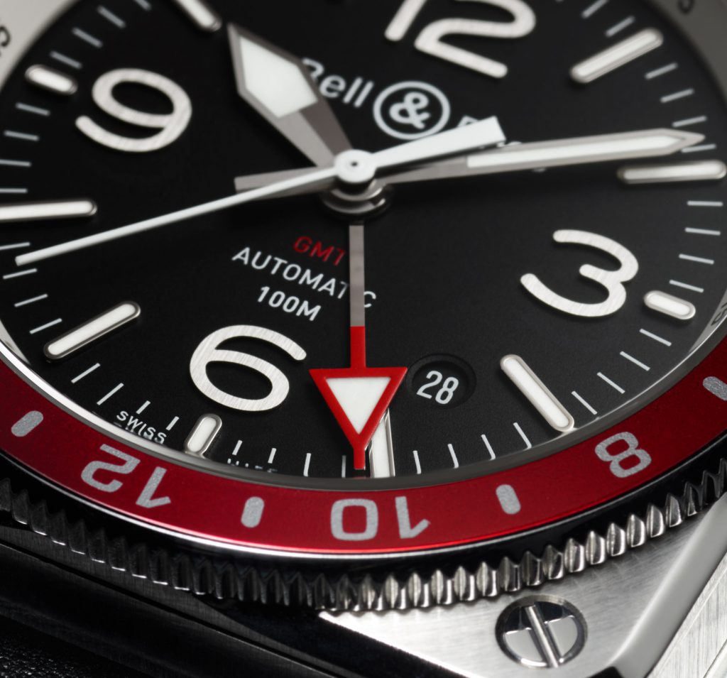 “A Bell & Ross optou pelas tonalidades Preto e Vermelho escuro. O vermelho é conhecido pelas suas propriedades francas, claras e dinâmicas. A secção a vermelho indica o dia e o preto a noite. Assim, a luneta de dois tons, em alumínio anodizado, proporciona um contraste visual e uma melhor leitura do tempo”, diz a marca.