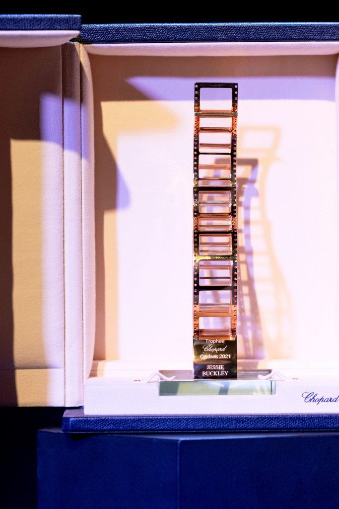A atriz Jessica Chastain, ilustre madrinha do Troféu Chopard 2021, entregou os prémios aos dois vencedores durante um jantar oficial realizado no Hotel Majestic e a convite de Pierre Lescure (Presidente do Festival Cinema de Cannes), Thierry Frémaux (Delegado Geral) e Caroline Scheufele (Copresidente e Diretora Criativa da Chopard).