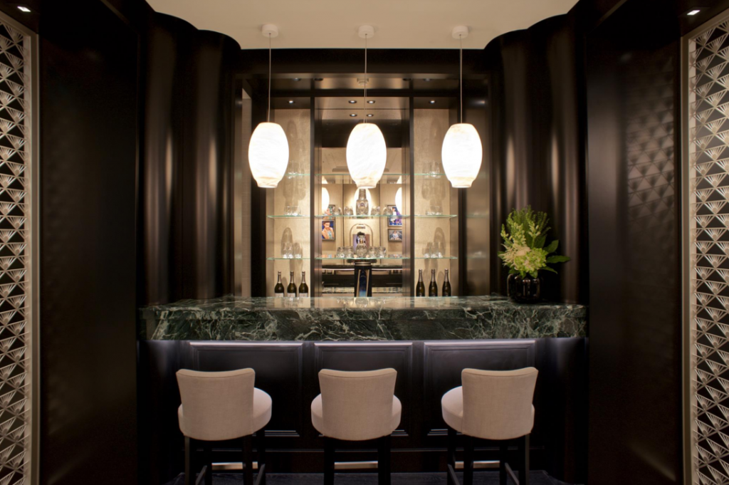 Para assegurar um “toque pessoal à boutique”, junto à parede do pequeno salão Alhambra encontra-se um bar. Decorado com Azulejos, fabricados a partir de desenhos de arquivo com motivo Van Cleef & Arpels ao estilo Art Déco, “mescla a cultura joalheira e o savoir- faire local das célebres cerâmicas portuguesas”.
