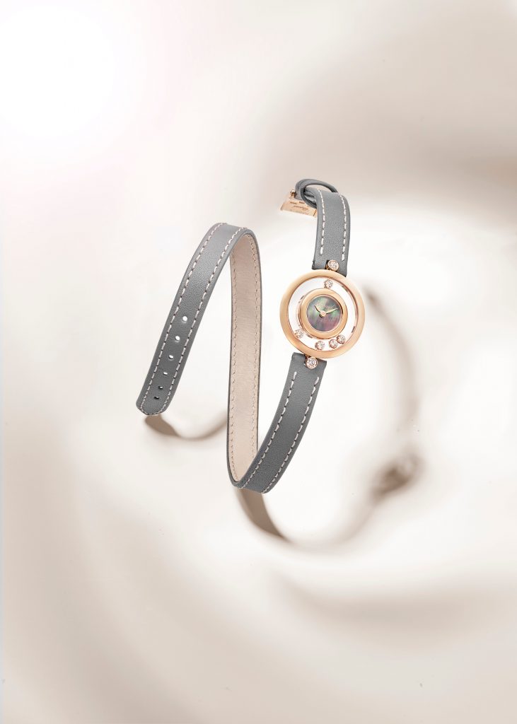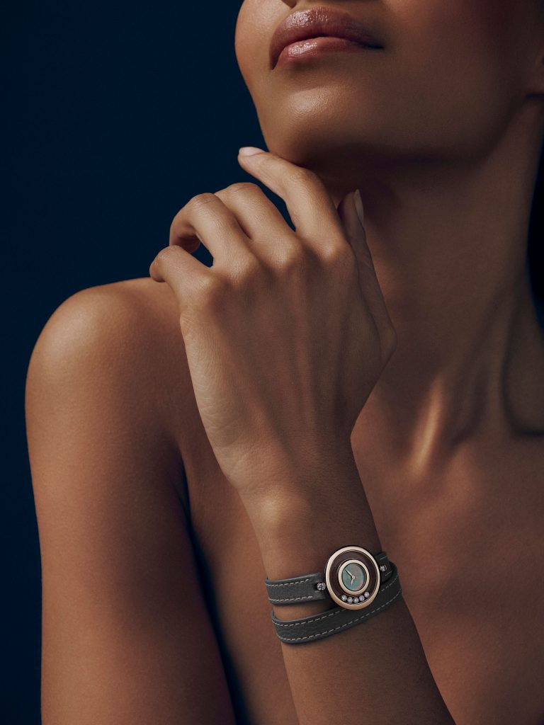 A coleção de relógios Happy Diamonds da Chopard aparece com uma nova pulseira de couro napa dupla, garantindo uma sensação suave e flexível no pulso.