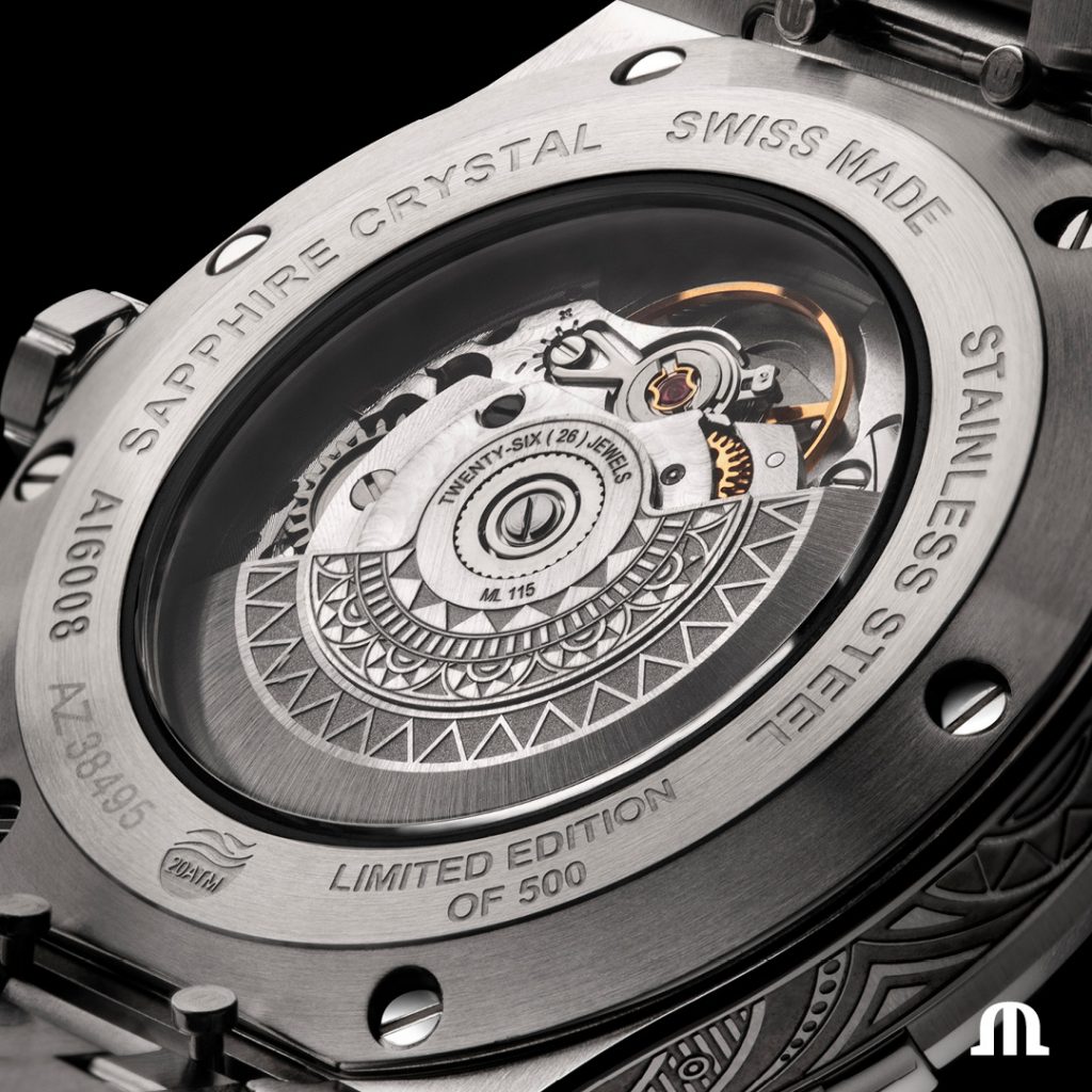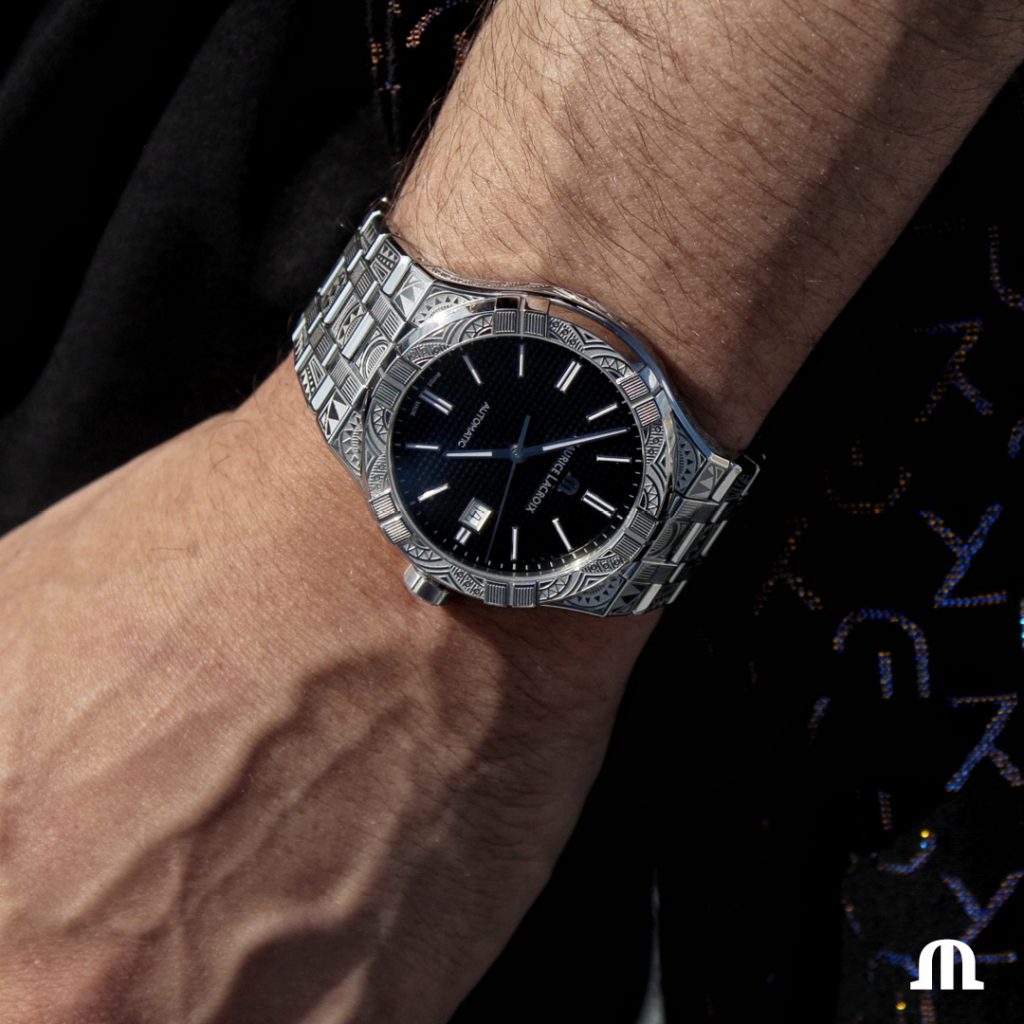Baseada na versão automática em aço de 42 mm, a edição limitada Maurice Lacroix Aikon Urban Tribe destaca-se pela sua caixa e pulseira de aço inoxidável, totalmente gravadas com padrões que lembram tatuagens Maori. Linhas e curvas adornam as superfícies do relógio, envolvendo a luz.