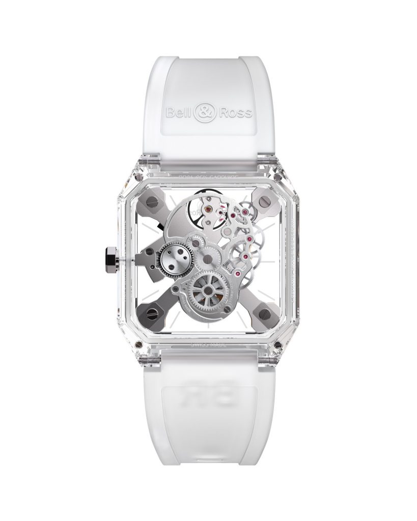 A Bell & Ross escolheu a safira para criar esta versão personalizada do BR 01 CYBER SKULL SAPPHIRE ONLY WATCH, um material de alta qualidade feito de corindo, um óxido de alumínio (Al2O3). A marca trabalhou num brilho claro e numa transparência “elegante” para usufruir de todo o seu potencial.