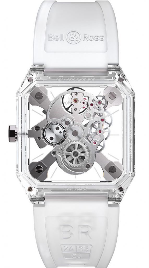 Usando o crânio como referência, a marca parisiense apresenta o Bell & Ross BR 01 Cyber Skull Sapphire. A mais recente versão é completamente translúcida e completa em safira. Este material técnico eleva-o de “ícone do mundo relojoeiro” para o “reino da transparência e da riqueza”, sugere a Bell & Ross.
