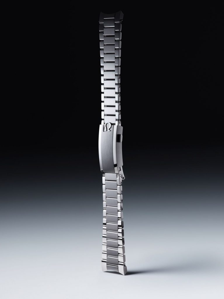 Para maximizar o contraste, o relógio recebeu um mostrador em ónix preto profundo com um logotipo OMEGA vintage aplicado e tipografia com um “O” oval – um detalhe típico dos primeiros modelos CK2915. Inclui ponteiros e índices em ouro branco de 18K com um tratamento PVD em Ouro Canopus™ e ainda três clássicos submostradores Speedmaster – submostrador de pequenos segundos, registadores de 30 minutos e 12 horas, juntamente com um ponteiro do cronógrafo central.