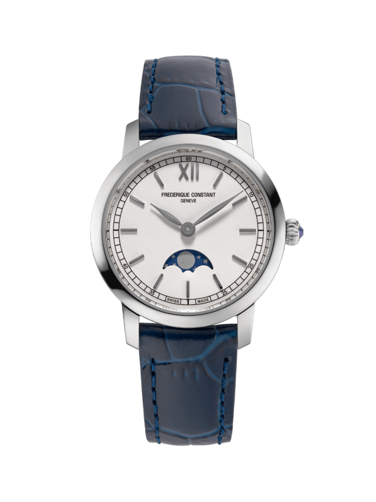 A linha Slimline Ladies Moonphase, já amplamente considerada como uma criação emblemática da Frederique Constant, ganhou dois novos modelos. Simples, refinados, elegantes e acessíveis, eles refletem o desejo da marca de ampliar a base de clientes dos relógios de luxo Swiss Made.