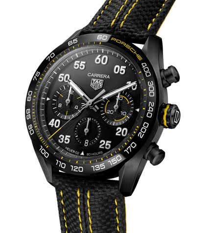 O TAG Heuer Carrera x Porsche Limited Edition é baseado no emblemático TAG Heuer Carrera Sport Chronograph, com uma performance excecional graças ao seu in-house Calibre Heuer 02, constituído por um movimento produzido por inteiro na fábrica TAG Heur em Chevenez, com 168 peças, incluindo o sistema de roda de colunas e travão/embraiagem vertical e a “impressionante” reserva de marcha de 80 horas.