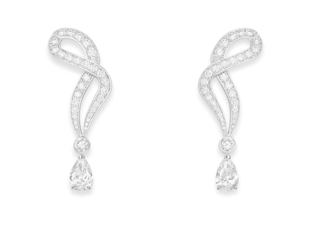Inspirado nas criações de Haute-Couture, o design fluido dos conjuntos Voluptuous Ribbon e Generous Laces reproduz a assimetria delicada dos laços encantadores com fitas de tecido. O colar articulado Precious Adornment combina o movimento e a adaptabilidade de um vestido precioso. As plumas deslumbrantes do relógio Extravagant Touch transformam-se em brincos, o motivo central do colar Flamboyant Nightfall desmonta-se para se encaixar num anel!