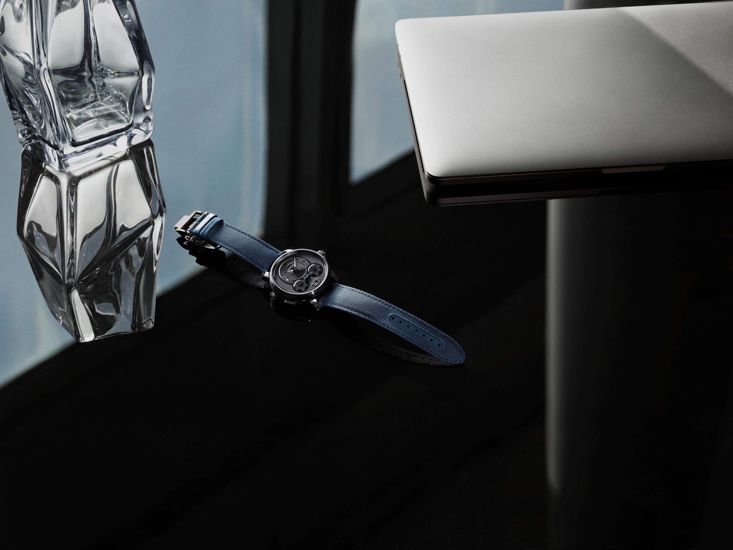 A Montblanc apresenta duas novas e inesperadas interpretações deste relógio – uma em aço inoxidável e outra em aço inoxidável revestido a DLC (limitada a 500 peças). Ambas disponibilizam uma nova caixa ergonómica em forma de seixo, com 43 mm de diâmetro (o tamanho anterior era 44,8 mm), detalhes em azul que lembram a cor da tinta – uma homenagem ao dispositivo original – e uma coroa em forma de cebola.