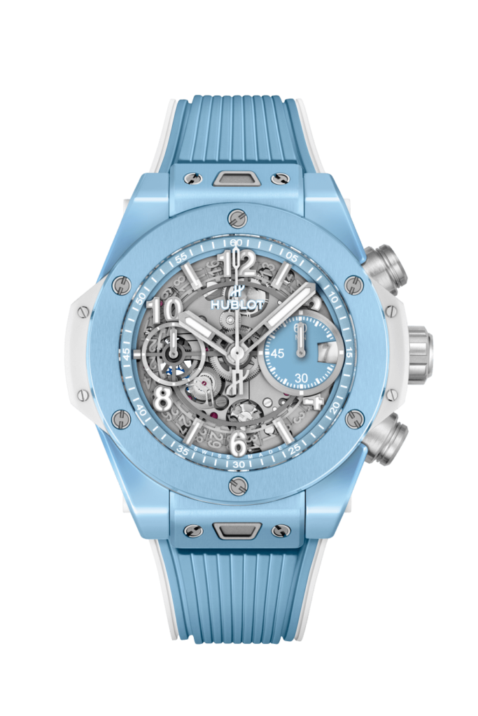 Sendo a cor mais popular do mundo, o azul simboliza novos horizontes, desperta o desejo de fugir e inspira novos caminhos para a exploração. Voe com as cores do Big Bang Unico Sky Blue 42mm no seu pulso. Um céu cintilante confere à cerâmica da caixa um toque leve e lúdico de liberdade.