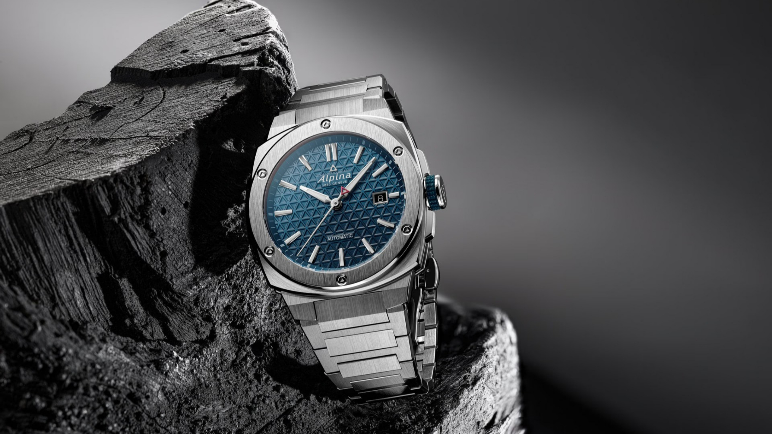 O novo Alpiner Extreme Automatic é apresentado numa caixa de 41×42,5mm e dois mostradores, um azul-marinho e um cinza. A Alpina manteve a assinatura icónica da linha Alpiner Extreme no mostrador: um motivo triangular inspirado no logótipo da Maison. O motivo também aparece no contrapeso do ponteiro dos segundos, lembrando os amados picos das montanhas cobertas de neve.