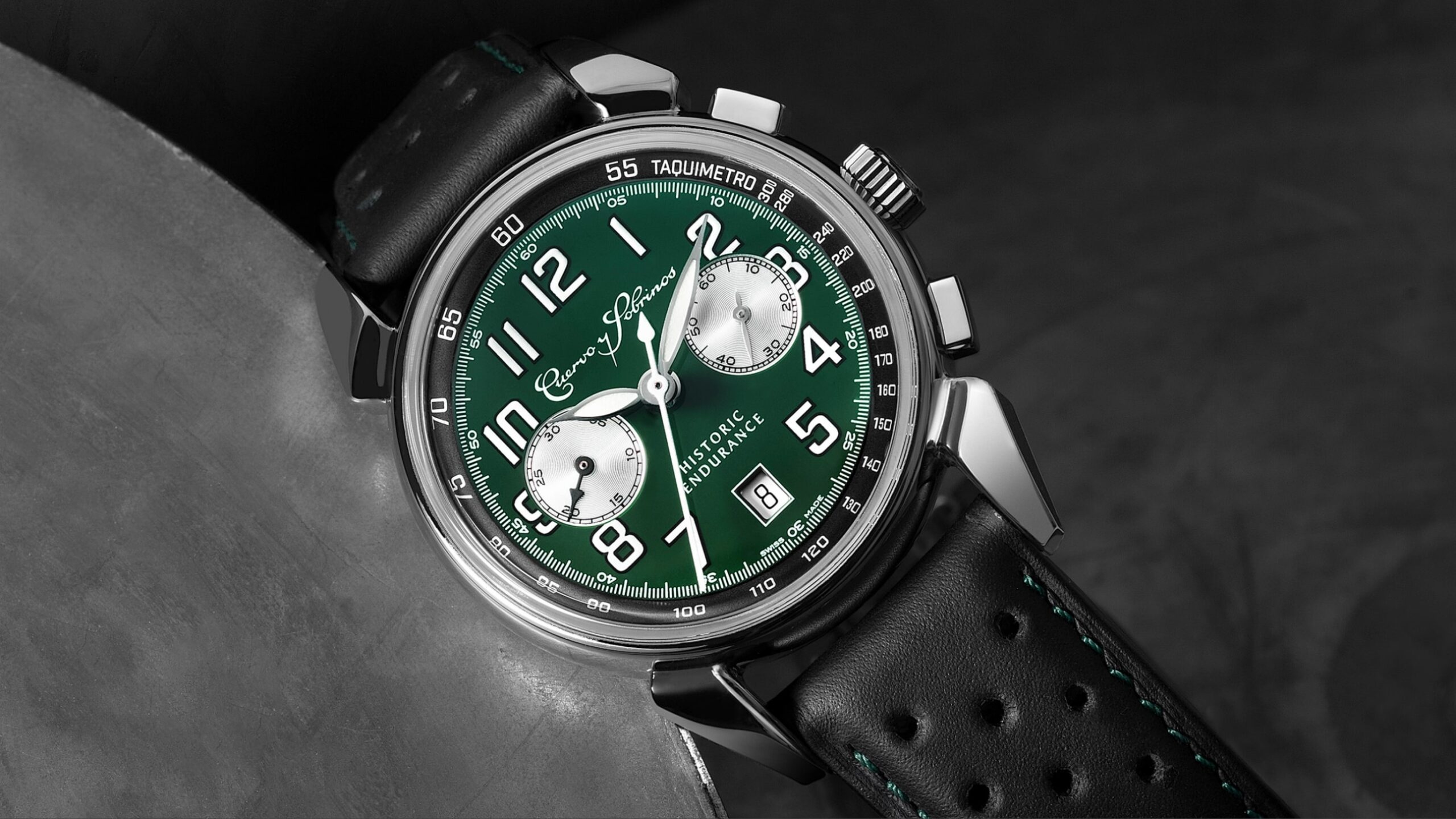 Há muitos anos que a Cuervo y Sobrinos está ligada ao mundo dos automóveis clássicos. O fascínio das corridas vai muito para além da competição. Para os pilotos e os seus acompanhantes, cada fim de semana de competição é uma viagem ao passado, a uma época em que o ambiente nas corridas era mais descontraído e divertido. Para celebrar esta paixão comum, este ano a Cuervo y Sobrinos está a fabricar um cronógrafo especial inteiramente dedicado ao Iberian Historic Endurance. De inspiração vintage, o cronógrafo “Endurance”, com o seu mostrador verde britânico, é o companheiro perfeito do cavalheiro condutor.