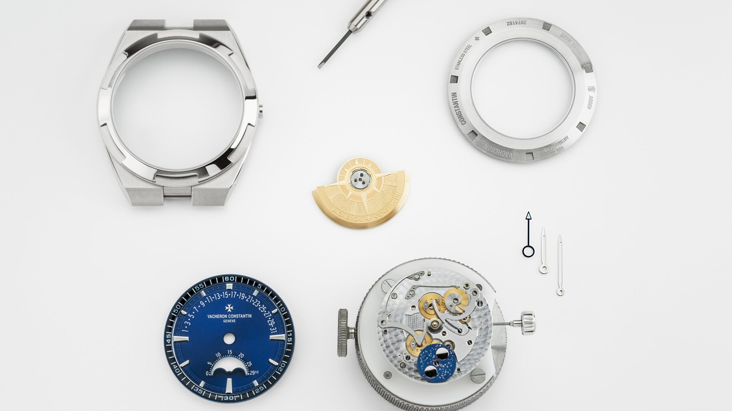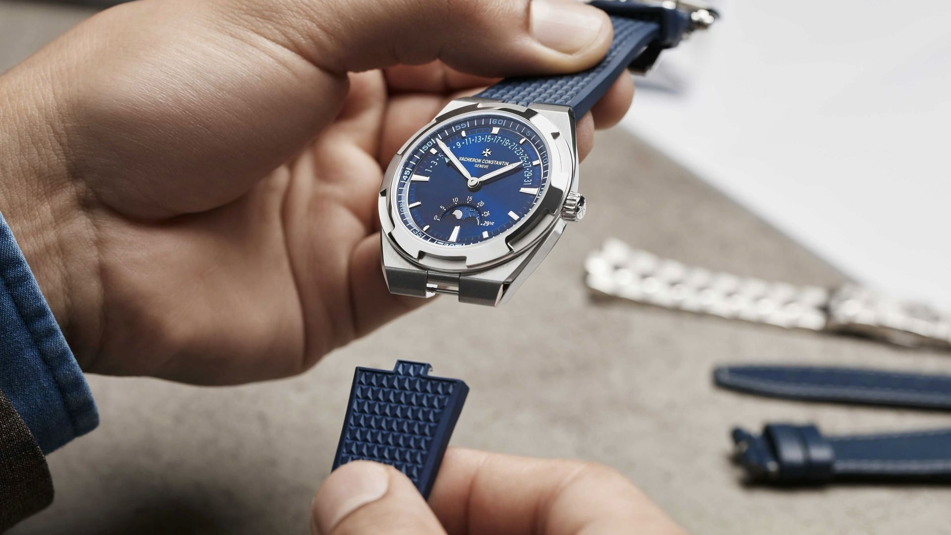 O novo modelo Overseas com data e fase lunar retrógrada incorpora todas as características distintivas que contribuem para a identidade visual e qualidades relojoeiras da coleção. Dentro da caixa de aço de 41 milímetros bate o Calibre 2460 R31L/2, um movimento de fabrico que combina a visualização da data retrógrada e a fase da lua de alta precisão, pela primeira vez nesta coleção. No icónico mostrador azul-lacado, o jogo de luz gerado pelo friso com acabamento aveludado e o centro com acabamento acetinado com efeito de raios solares assume o protagonismo.