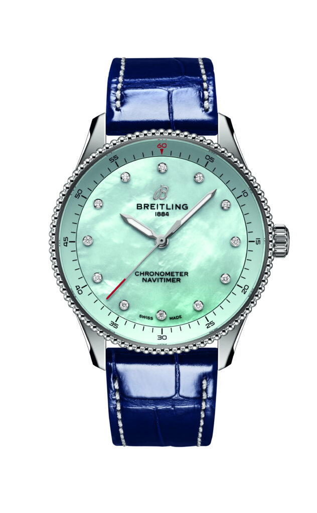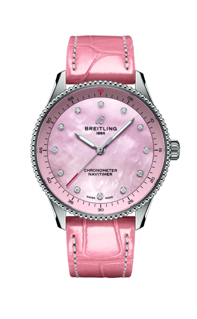 A Breitling apresenta duas novidades da coleção Navitimer, em dois novos tamanhos, de 36 e de 32mm, para quem prefere o visual e o conforto de um relógio com um diâmetro menor. Mas estes modelos têm muito mais a oferecer do que apenas os novos tamanhos. Os pormenores em tons pastel, a madrepérola e os materiais preciosos rastreáveis combinam com o distinto bisel de contas do Navitimer para criar relógios com um look de joia.