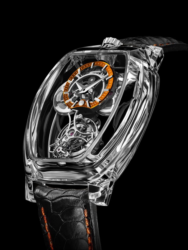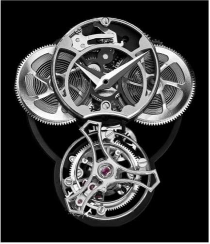 Três relógios, três turbilhões, três calibres estelares da Manufature e um savoir-faire único na mestria da safira – tudo em casos cujos atributos (coroa, luneta, asas, laterais e costas) são completamente transparentes, revelando a arquitetura sublime do movimento. Cada relógio combina elegância e requinte, com cada forma, linha e volume espacial a falar de uma estética sofisticada.