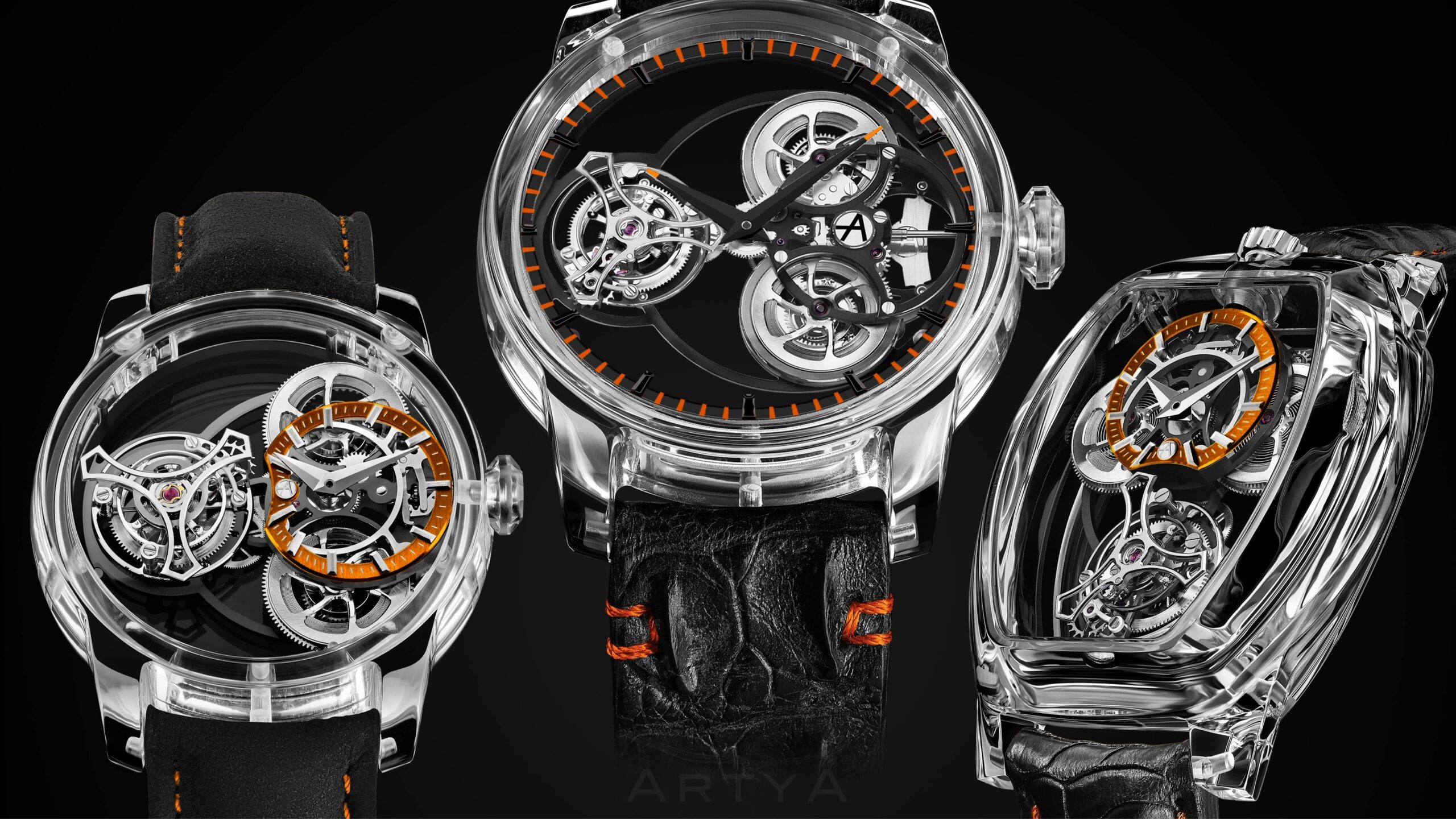 ArtyA está à altura do desafio criativo com três relógios que capturam a essência do Halloween: escuridão, luz, sombra, transparência e o cintilar de laranja… Esta coleção é muito mais do que uma mera variação da família Purity Tourbillon. Além de novos mostradores e marcadores de horas para melhorar a legibilidade, abre um vasto campo de possibilidades de design, destacadas aqui nos tons do Dia das Bruxas.