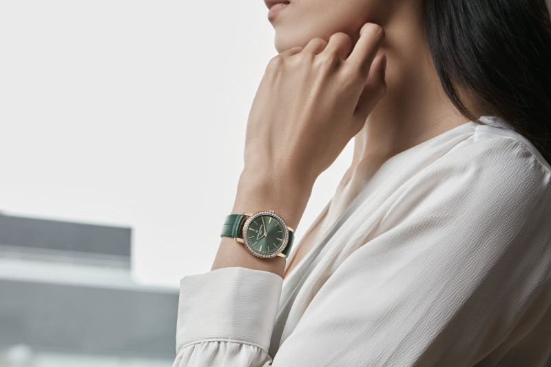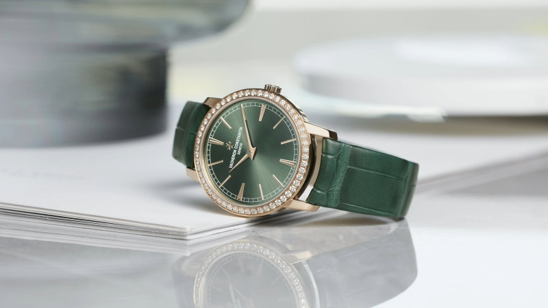 Radiantes, luminosos e intemporais, os dois novos relógios Traditionnelle de corda manual apresentados na feira Watches and Wonders Shanghai juntam-se à coleção clássica da Vacheron Constantin. Dotados de um mostrador em tons de verde intenso com efeito de raios de sol, eles encerram o espírito da época no coração de uma elegante caixa clássica em ouro rosa, reconhecível pelo seu perfil esguio e escalonado.