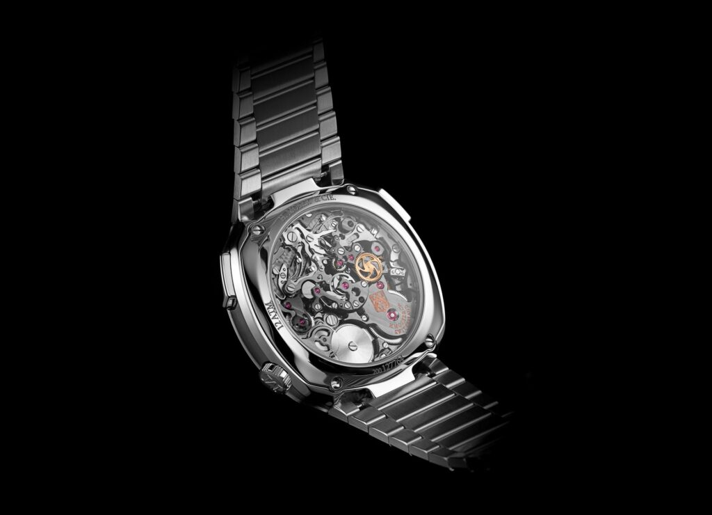 Para a atualização de seu premiado cronógrafo, a marca baseada em Schaffhausen apresenta o logótipo em laca transparente no mostrador Funky Blue, uma assinatura exclusiva da H. Moser & Cie.. Outra das novidades é o movimento mais contemporâneo, com acabamento de ródio cinza antracite nas pontes e platina principal, no mesmo espírito do calibre Streamliner Perpetual Calendar.