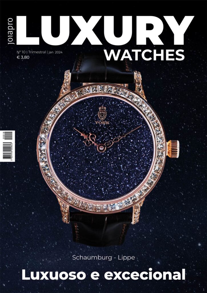 Em 2009, York Prince de Schaumburg-Lippe fundou a marca de joias e relógios de nome Conde de Lippe Group e, recentemente, concedeu-nos uma entrevista em Cascais. Na capa desta edição encontramos o relógio FORT DE LIPPE MONACO PRINCESS DIAMOND WHITE GOLD, limitado a 10 unidades, movimento automático SW07 com reserva de marcha de 48 horas, envolto em ouro rosa de 18 quilates, 44,00 mm de diâmetro, com hastes e moldura decorada em diamantes finíssimos de 8,6 quilates, lapidação Princesa e cristal de safira de dupla face.