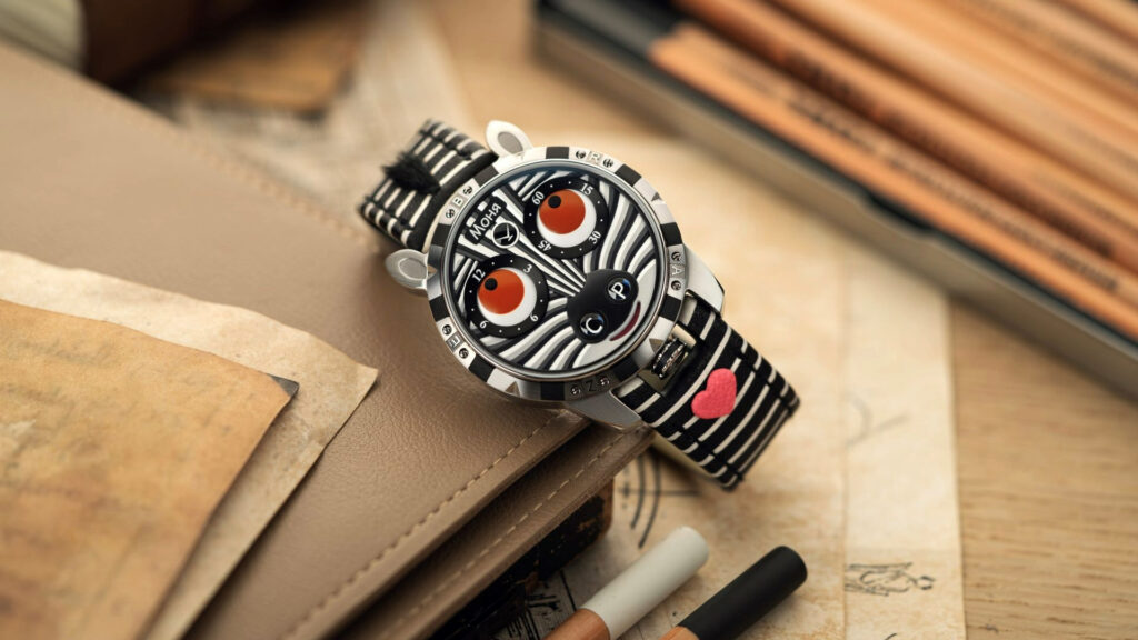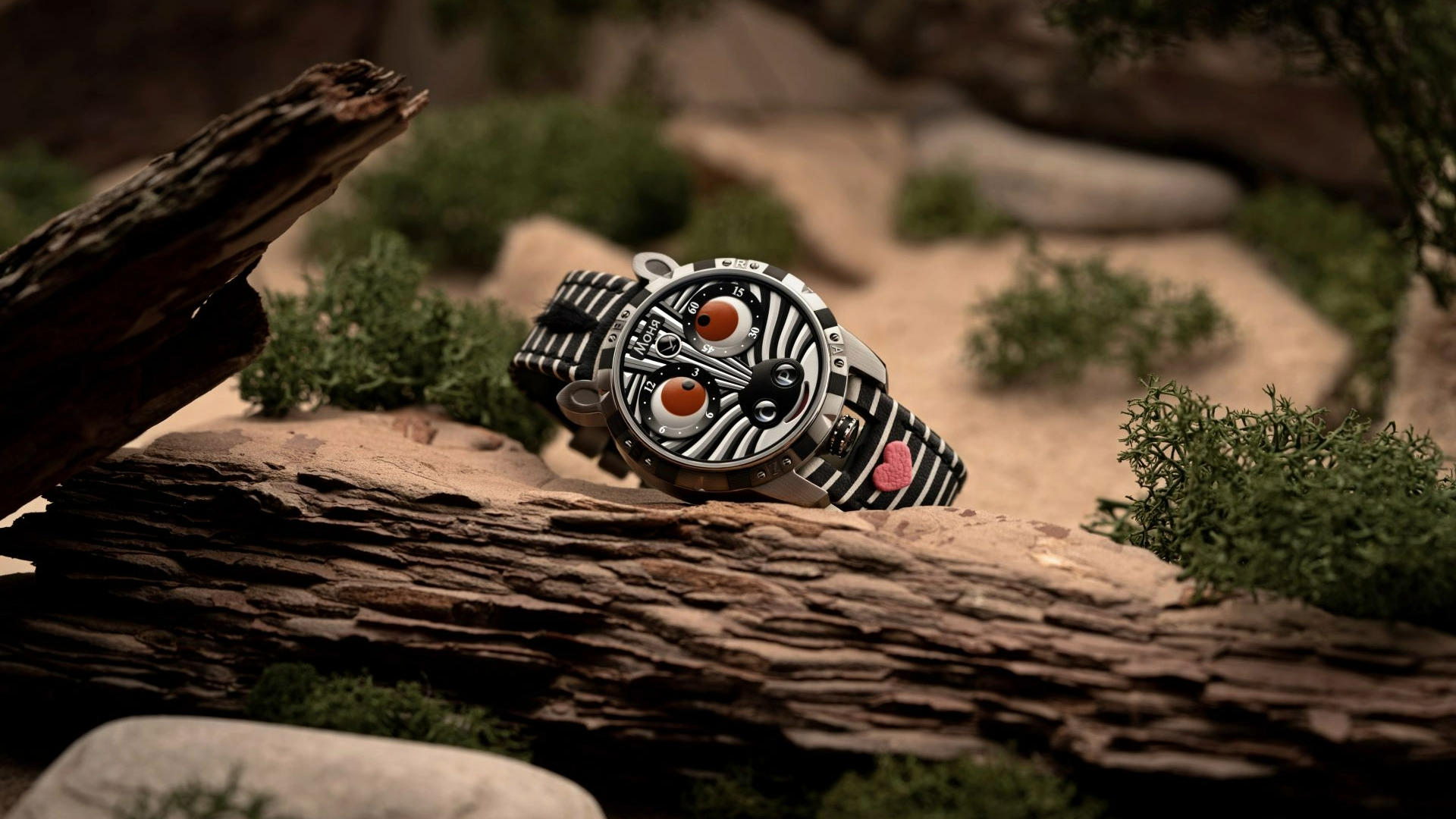 O novo Wristmon também chama a atenção porque, nos últimos modelos da coleção, o mestre dá vida às suas invenções e desenvolvimentos técnicos, introduzindo ocasionalmente funções que antes não existiam. O relógio Zebra é suficiente para reconhecer que ele não é apenas um novo caráter e design, mas também um novo movimento.