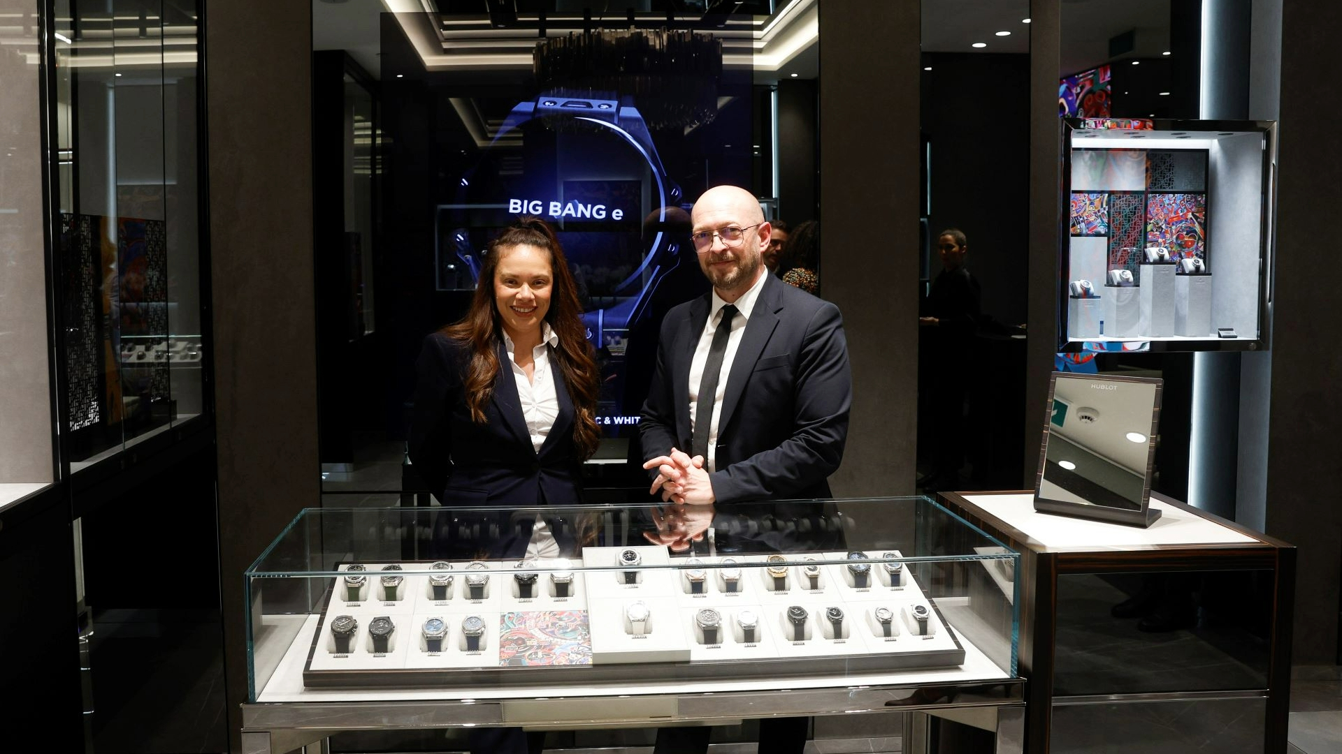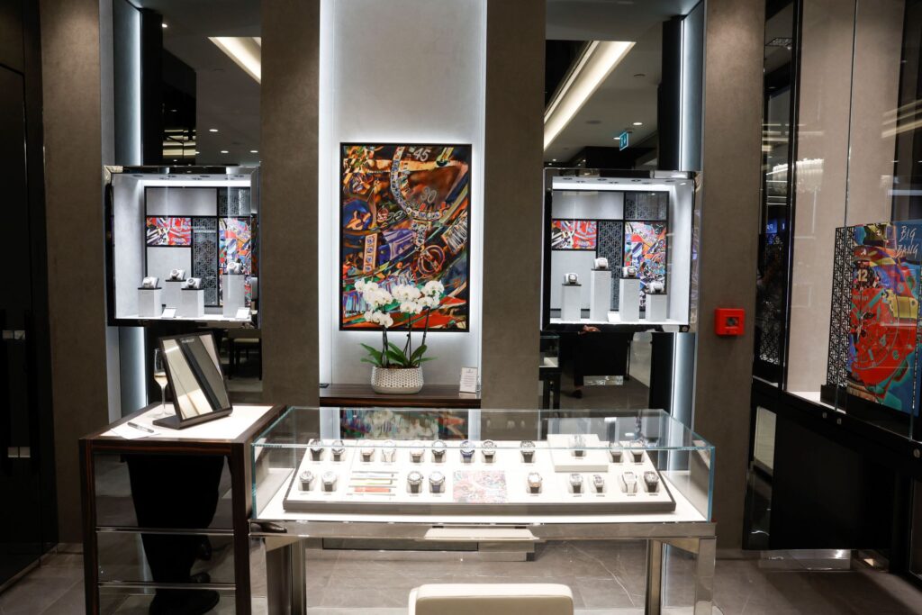 Além disso, tal como nas restantes boutiques desta relojoeira espalhadas por todo o mundo, presta-se homenagem ao universo da arte, tão intimamente ligado à Hublot, através da exibição de grandes quadros Pop Art inspirados em peças icónicas da coleção Hublot.