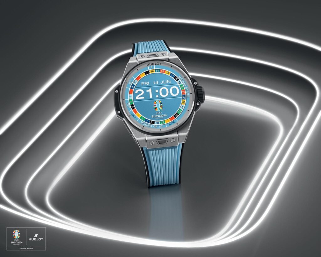 Marcando a quinta vez da Hublot como cronometrista oficial do UEFA EURO™, o Big Bang e Gen 3 UEFA EURO 2024™ é o relógio conectado da Hublot mais avançado de todos os tempos, equipado com o sistema operacional Wear OS by Google, permitindo que os fãs recebam notificações sobre o torneio em tempo real.