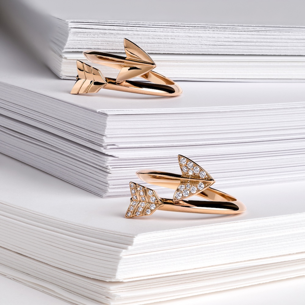 Os símbolos de devoção e afeto ganham vida na coleção Super Arrow,de Jacob & CO., através de um trabalho artesanal especializado e de designs contemporâneos. O simbolismo intemporal da seta dourada encontra-se com a estética do design moderno, criando peças que ressoam a seta do cupido do amor e da paixão.