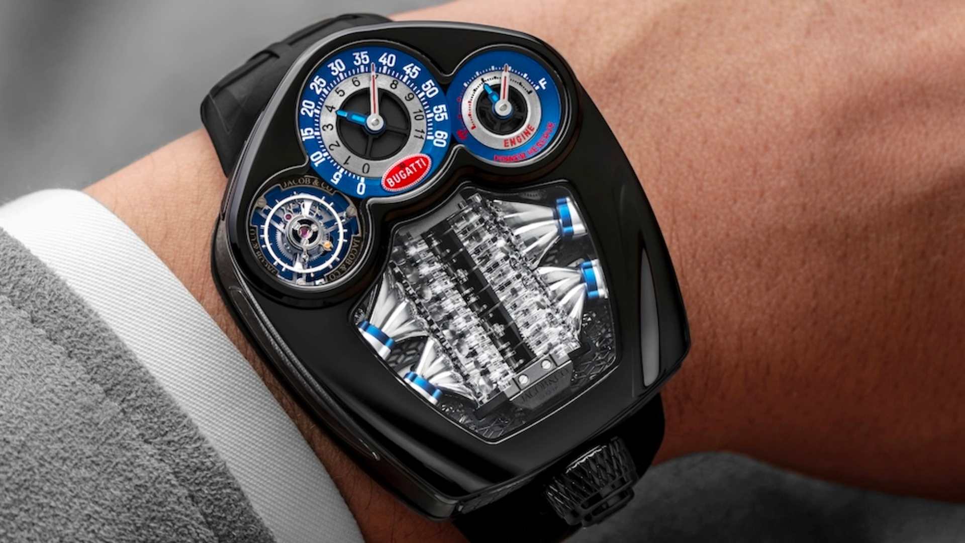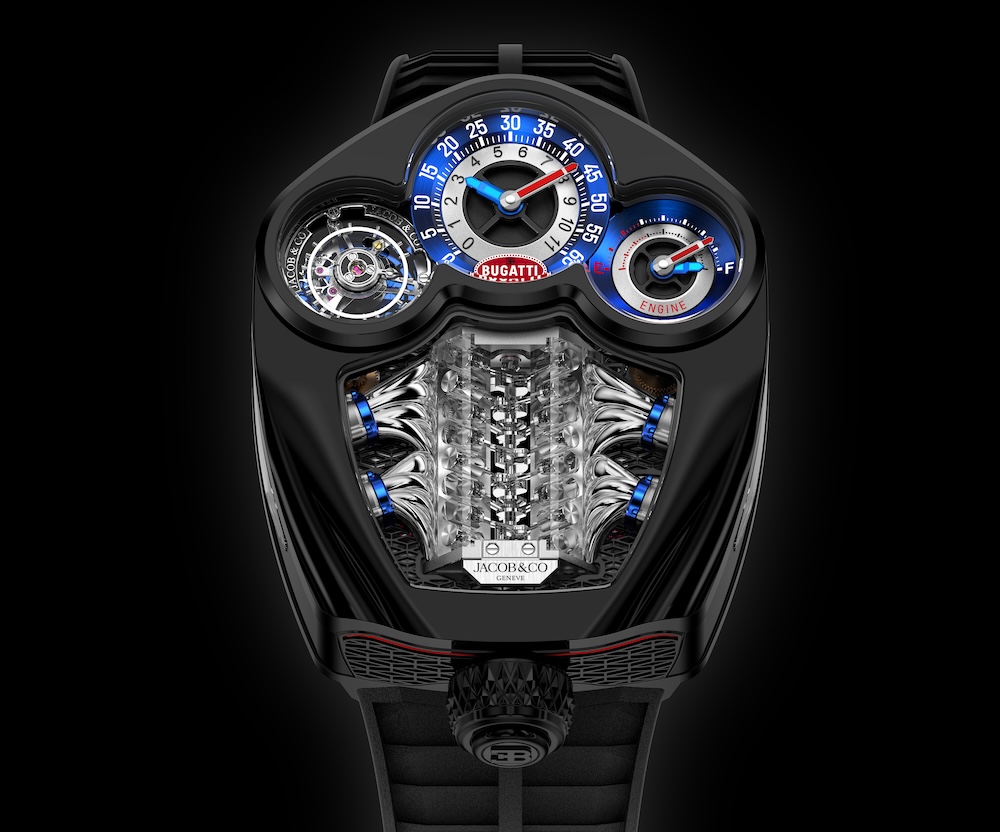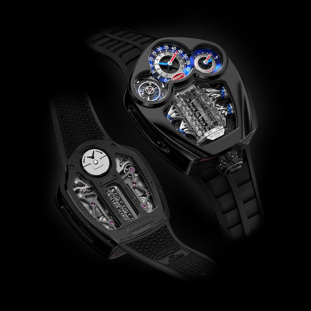 Integrando perfeitamente a estética, a mecânica e a funcionalidade, o Jacob & Co. Bugatti Tourbillon cria uma semelhança nunca antes vista entre um relógio e um automóvel. O novo relógio Jacob & Co. Bugatti Tourbillon está limitado a um total de 250 unidades, o mesmo que o automóvel homónimo. A primeira versão, em titânio DLC preto, será limitada a 150 peças.