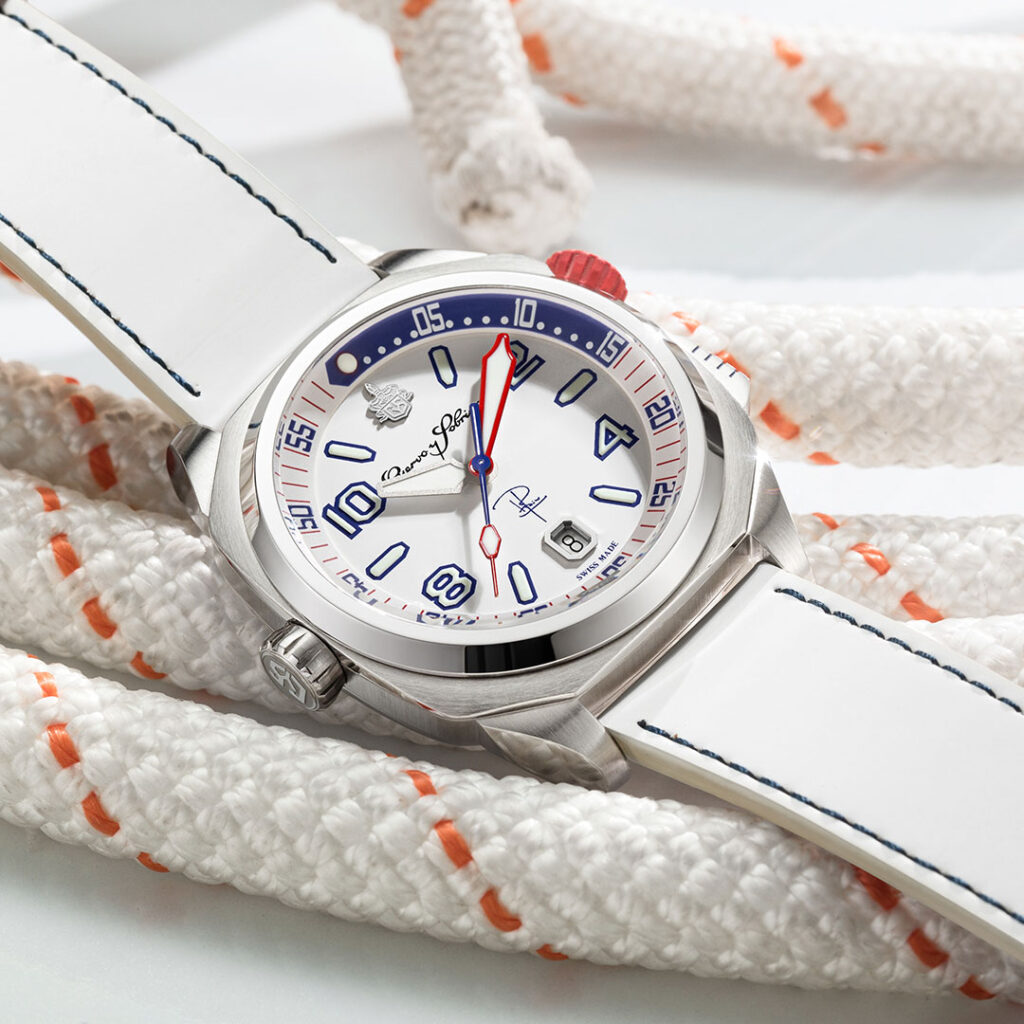 Este novo relógio de mergulho é apresentado numa combinação cativante de cores azul, vermelho e branco, inspirada na bandeira cubana. Projetado de forma ideal para uso subaquático, este modelo convida os utilizadores a mergulharem num mundo de extremos.
