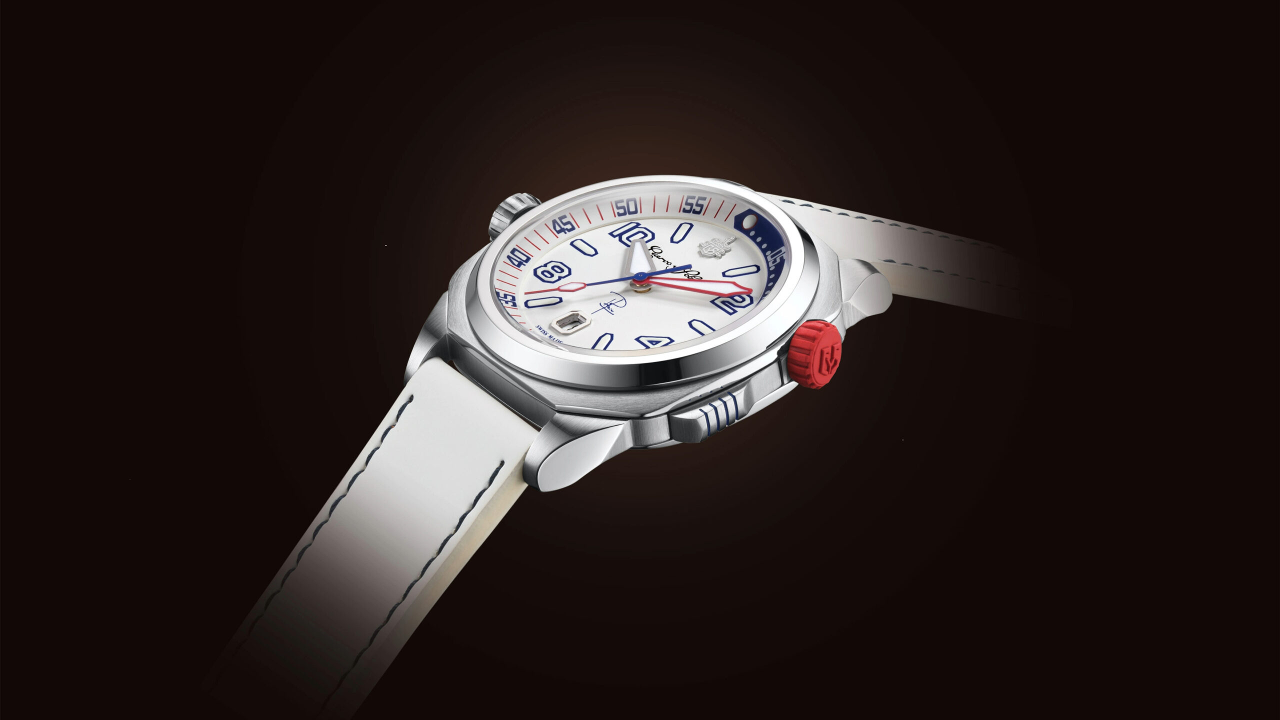 Projetado de forma ideal para ser legível tanto debaixo de água como em terra firme, o Buceador Caribe Pipin apresenta um mostrador branco puro com detalhes em azul e vermelho, uma homenagem à bandeira cubana. Os indexes brancos são contornados em azul, enquanto o ponteiro dos minutos, a indicação mais crítica debaixo de água, é destacado com um ponteiro vermelho brilhante. Tanto os ponteiros quanto os índices são revestidos com Super-LumiNova®.