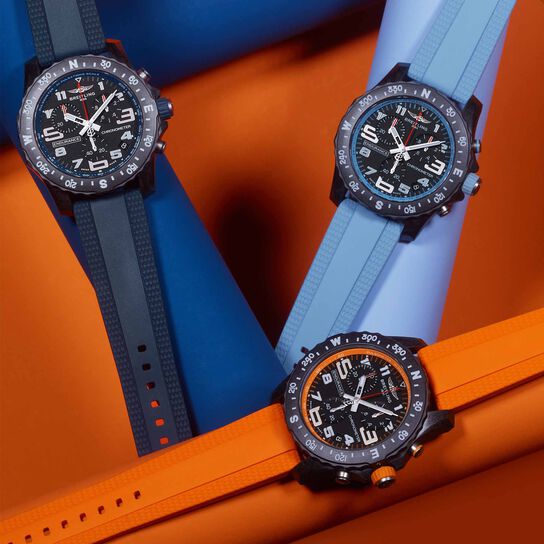 Com a sua caixa ultraleve e uma bracelete de borracha confortável, que se adapta na perfeição ao pulso, o Endurance Pro foi concebido para agradar tanto a atletas dedicados como a adeptos de desportos mais descontraídos. É feito em Breitlight®, um material robusto três vezes mais leve do que o titânio e quase seis vezes mais leve do que o aço. Além disso, o material é antimagnético, termicamente estável, hipoalergénico e altamente resistente a riscos, tração e corrosão.
