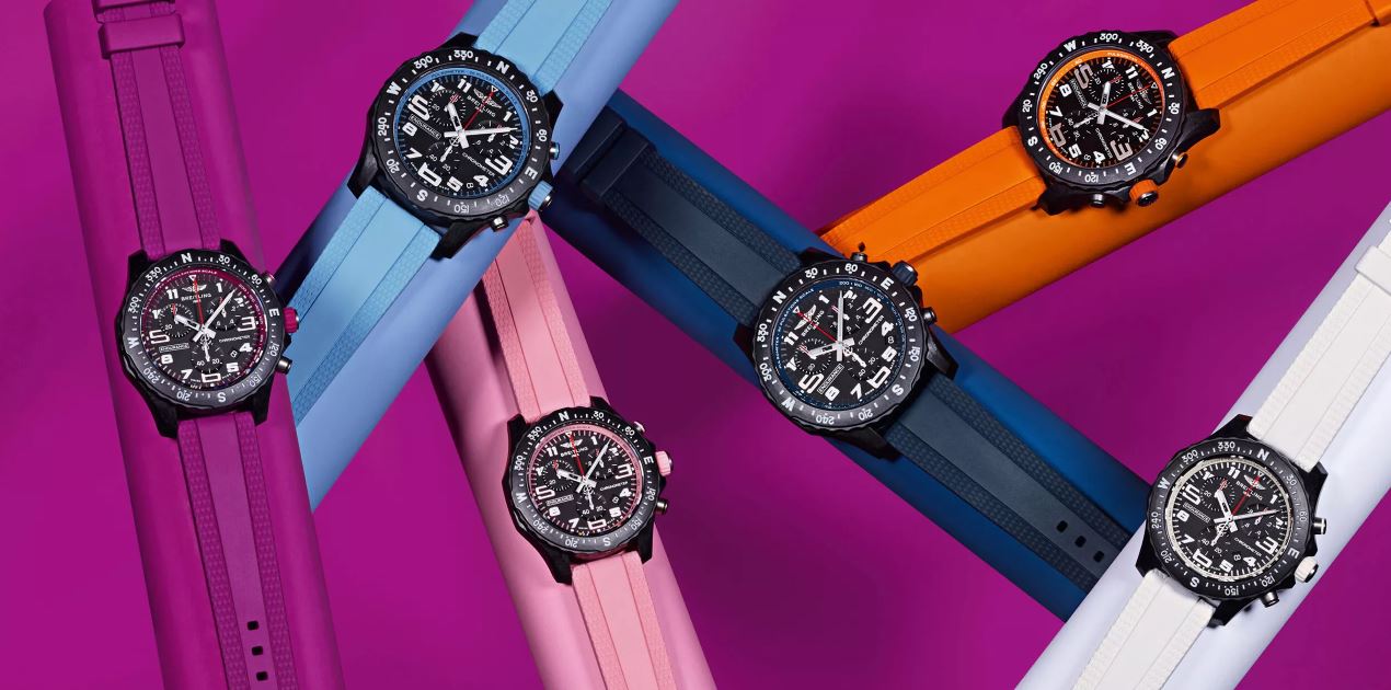 Nos novos modelos Endurance Pro de 38mm, as braceletes e as coroas apresentam cores a condizer com os anéis do bisel interior, podendo escolher entre cinco tonalidades: roxo, rosa, branco, azul-claro ou vermelho. Já o conhecido Endurance Pro de 44mm também foi alvo de uma atualização, estando agora disponível com uma nova e sóbria bracelete de borracha em azul-marinho, laranja, branco e azul-claro. Em ambos os tamanhos, os ponteiros e os números de grandes dimensões estão revestidos com Super‑LumiNova® para uma leitura fácil em condições de pouca luz.