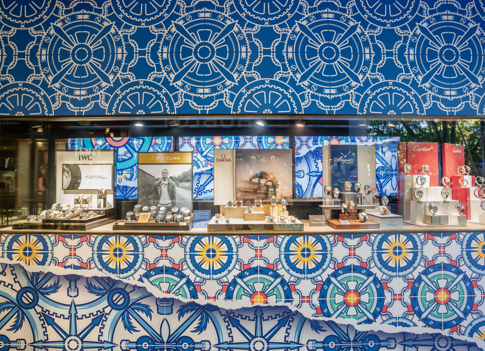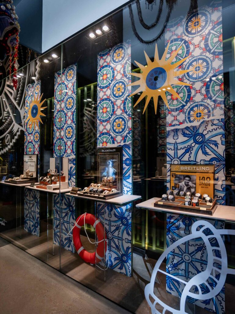 A arte de Diogo Machado, inspirada na azulejaria tradicional que remonta ao século XV, é caracterizada pela fusão de elementos clássicos com um estilo moderno e detalhado. Para esta colaboração com a Boutique dos Relógios Plus, o artista desenvolveu um conceito que combina a elegância da relojoaria com a frescura do verão, utilizando cores brilhantes e padrões intricados que evocam a beleza dos azulejos sob a intensa luz do sol.