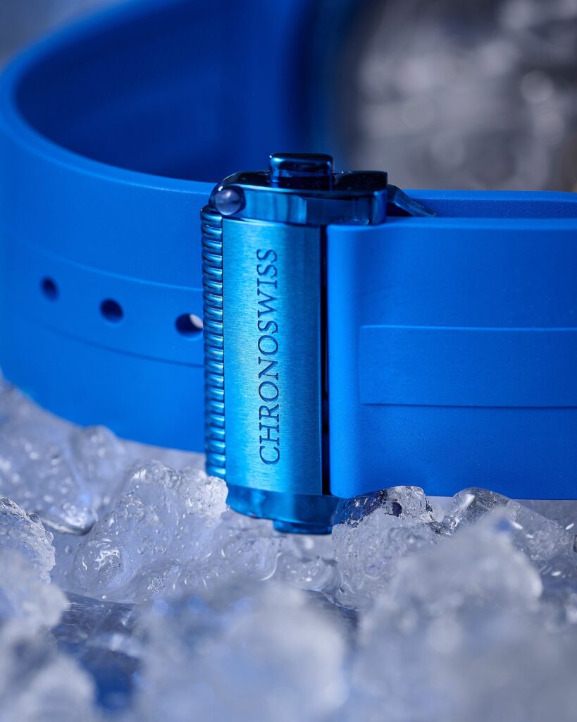 Enter the icy wilderness with the Delphis Sub Zero. This all-blue marvel, with its 42 mm CVD-coated stainless steel case and matching rubber strap, embodies the timeless allure of eternal ice. Discover the intersection between elegance and elegance.
