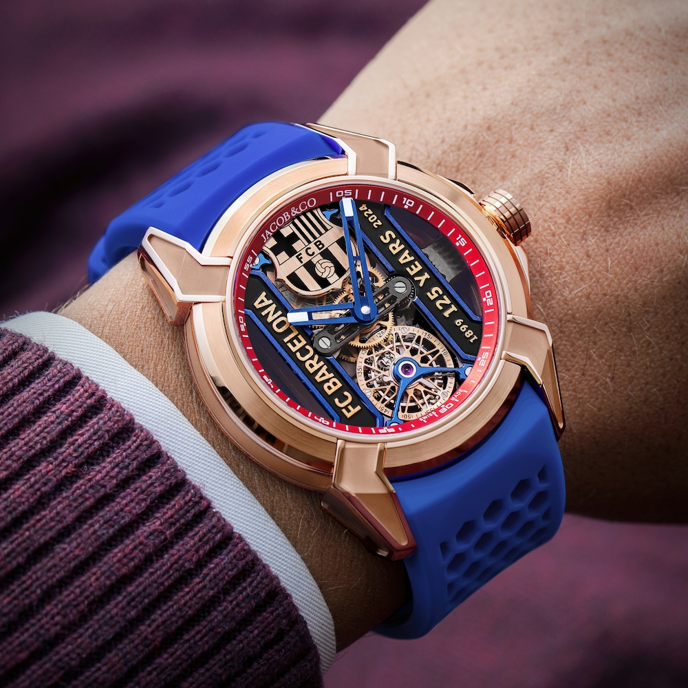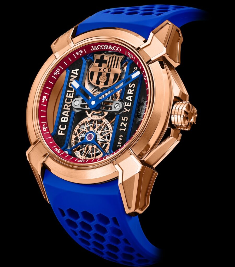 A Jacob & CO. apresenta o Epic X Tourbillon FC Barcelona 125th Anniversary Edition – uma obra-prima nascida da colaboração de dois gigantes. Este relógio de edição limitada, manufaturado em ouro rosa de 18k e limitado a 125 peças, personifica a paixão e a precisão que definem tanto a Jacob & Co. como o FC Barcelona.