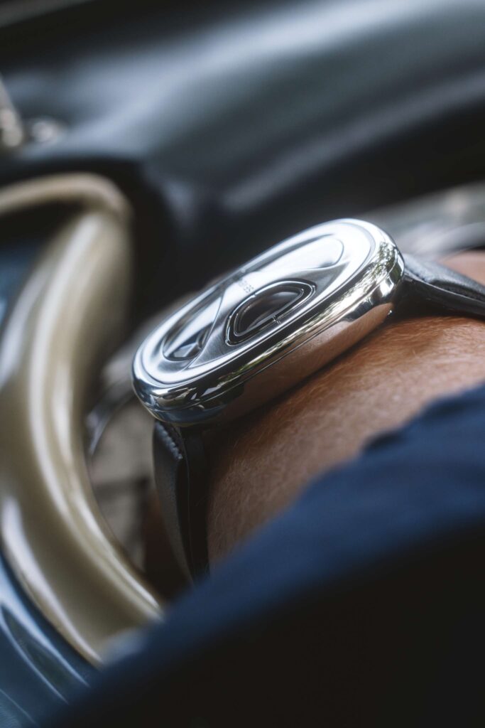 Com uma impressionante caixa de 44 mm, a Série ME tem uma dimensão menor e uma forma mais fina e arredondada, comparada à Série M. Um destaque absoluto é o vidro em safira com três recortes, que contribui para o visual e a sensação modernos da série.