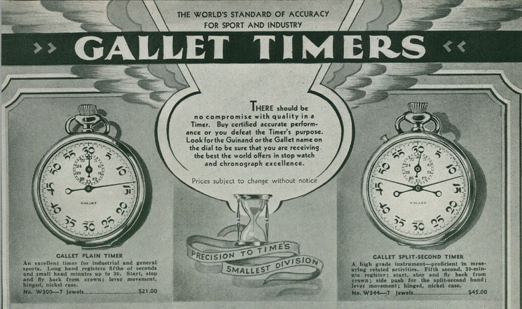 A linha incluía também o Multichron Regulator, que a lenda norte-americana Rex Mays recebeu como prémio em 1940 depois de conquistar a vitória no Springfield Mile, um famoso campeonato de automobilismo de pista plana. O prémio assinala a relevância da Gallet nos desportos motorizados e o excecional desempenho sob pressão. O Multichron Regulator personificava a precisão e o dinamismo incessante que caracterizavam Mays e o mundo dos desportos motorizados de alta potência.
