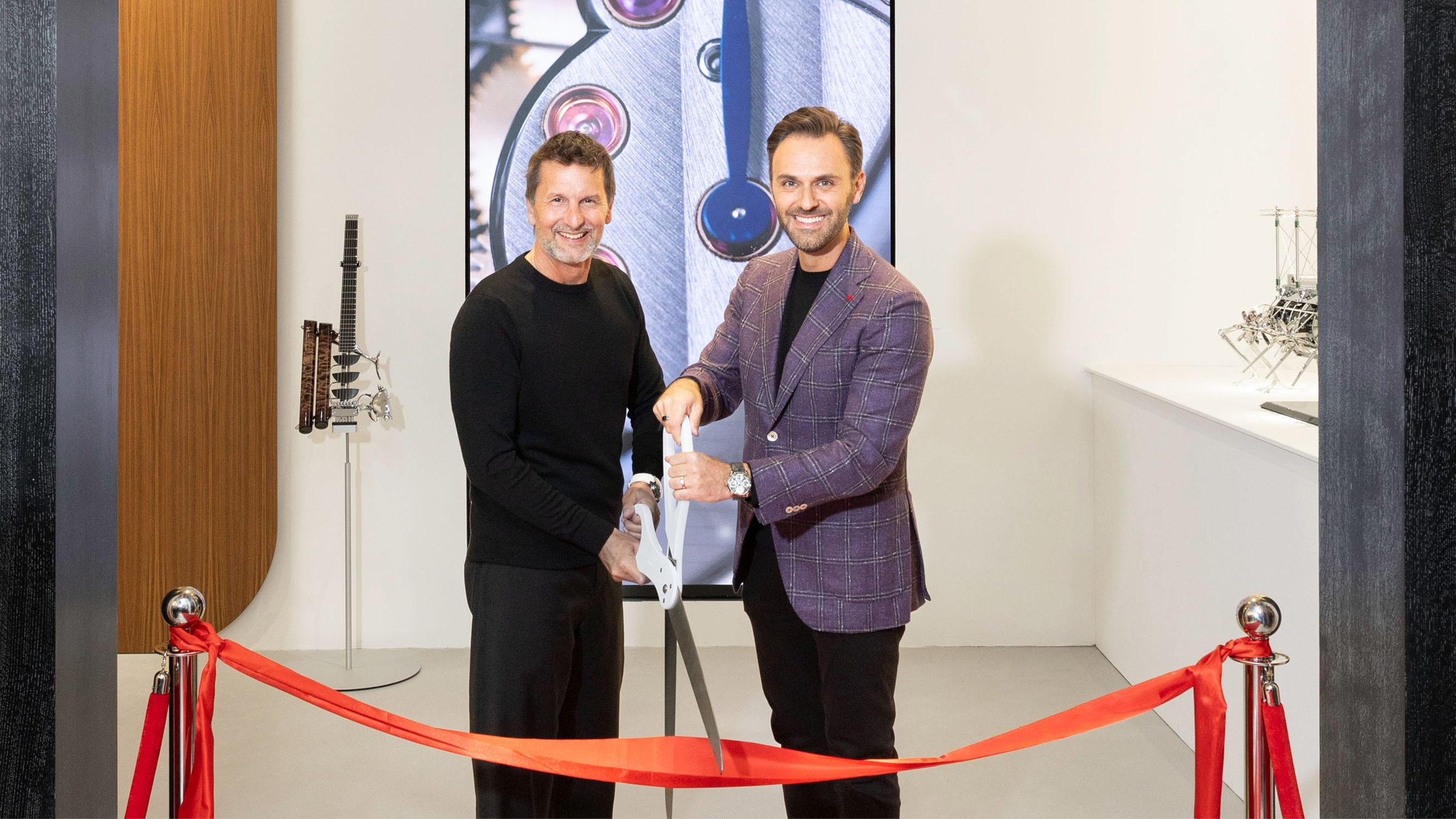 O fundador da MB&F, Maximilian Büsser, juntou-se ao presidente da Stephen Silver Fine Jewelry, Jared Silver, colecionadores, clientes e amigos para o evento íntimo de abertura e do corte da fita em 23 de janeiro de 2025. O importante evento de abertura também marcou o 20º aniversário da marca de relógios suíça e as suas duas décadas de criatividade desenfreada, designs ousados e inovações que mudaram para sempre – e desafiaram – a indústria relojoeira global.