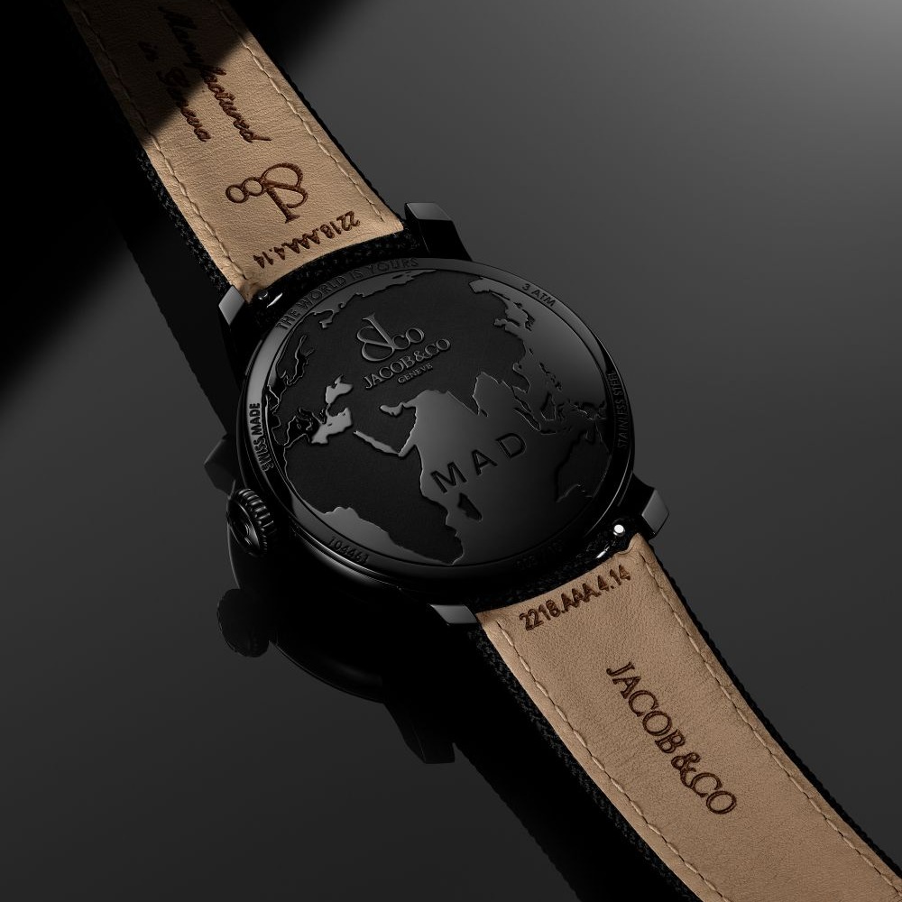 A construção meticulosa inclui ainda um fundo de caixa gravado a laser com o mapa do mundo e assinatura MAD Paris, cristal de safira antirreflexo e resistência à água até 30 metros.