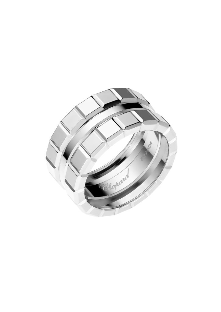 Além disso, usou um alfinete da coleção Haute Joaillerie em ouro branco 18k com uma pérola branca do mar do sul, 3,87 quilates de safiras rosa e 0,66 quilates de diamantes, botões de punho da coleção Alpine Eagle em aço Lucent, juntamente com um anel em ouro branco 18k e um anel em ouro branco 18k com diamantes de 0,03 quilates, ambos da coleção Ice Cube.