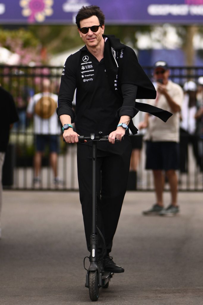 Toto Wolff usava dois relógios – o Pilot’s Watch Automatic 41 George Russell (Ref. IW328107) em um pulso e, no outro, o Big Pilot’s Watch Shock Absorber XPL Toto Wolff x Mercedes-AMG PETRONAS Formula One™ Team (Ref. IW356201).